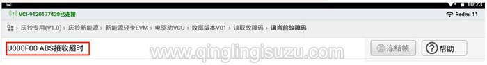 2.1 After checking dashboard fault lists, fault code 22 should be ABS receiving time out fault. And using KT710 to read the fault, fault code is U000F00. Then it was confirmed as ABS receiving timeout fault.